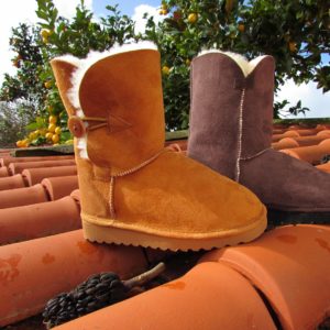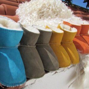 Os nossos modelos são feitos em pele “double face”, isto é, na mesma pele trabalhamos o lado da lã e o lado do carnal (ou pele).